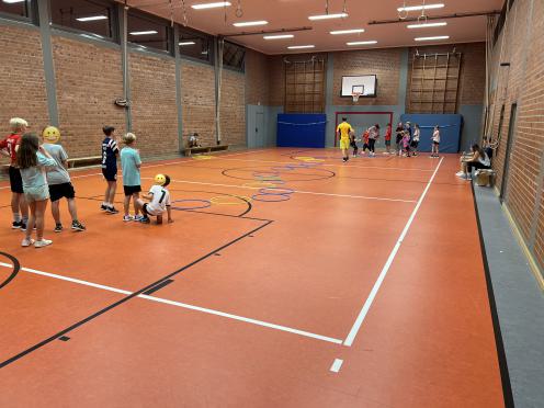 Die Halle wurde zur großen Abenteuerlandschaft: Gemeinsam bauten die Kinder fantasievolle Parcours und Burgen aus Turnmaterialien und tobten sich anschließend daran aus. Teamgeist war bei zahlreichen Mannschaftsspielen gefragt – darunter kreative Highlights wie Action-Tik-Tok-Toe und Action-Schnick-Schnack-Schnuck, bei denen nicht nur Beweglichkeit, sondern auch Köpfchen gefragt war.