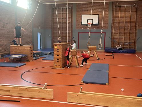 Die Halle wurde zur großen Abenteuerlandschaft: Gemeinsam bauten die Kinder fantasievolle Parcours und Burgen aus Turnmaterialien und tobten sich anschließend daran aus. Teamgeist war bei zahlreichen Mannschaftsspielen gefragt – darunter kreative Highlights wie Action-Tik-Tok-Toe und Action-Schnick-Schnack-Schnuck, bei denen nicht nur Beweglichkeit, sondern auch Köpfchen gefragt war.