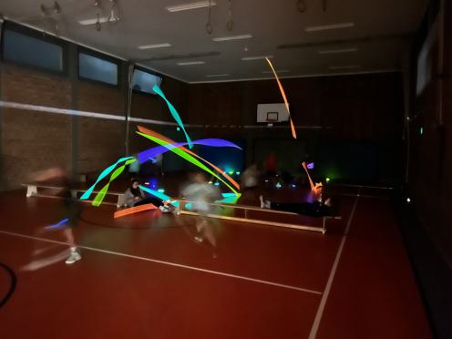 Ein besonderes Erlebnis erwartete die Kinder am Abend: In der verdunkelten Turnhalle sorgte eine Knicklichter-Schlacht für strahlende Augen und leuchtende Farben. Im Anschluss verwandelte sich die Sporthalle in ein Nachtlager – natürlich ganz im Sinne der Aktion – mit Schlafplätzen aus verschiedensten Sportmaterialien. Die Nacht war kurz, aber voller Abenteuer.