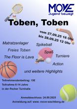 Es ist bald soweit- auch in diesem Jahr möchten wir euch wieder zu unserer Toben, toben Aktion einladen. Vom 27. auf den 28. September werden wir uns in diesem Jahr in der Turnhalle in Pech „einsperren“. Alle Kinder und Jugendliche zwischen 8 und 14 Jahren sind herzlich eingeladen mit uns einen ganzen Tag und eine ganze Nacht zu toben.